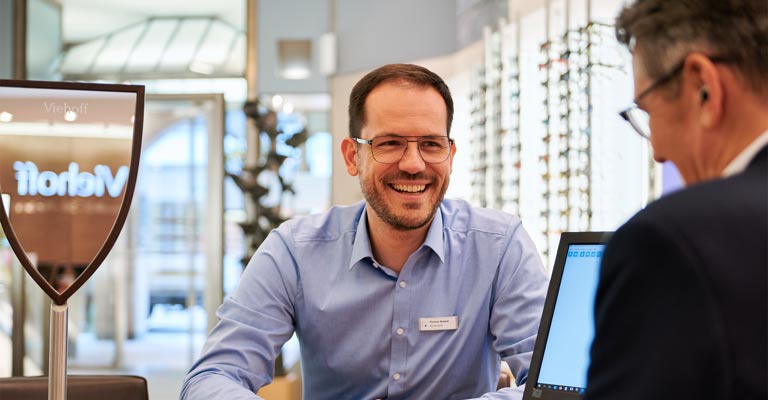 Unsere hochqualifizierten Augenoptiker nehmen sich viel Zeit für Ihre perfekte persönliche Beratung, denn schließlich geht es bei einer Brille um viel mehr als nur um eine Sehhilfe, es geht um Ihre Augen und Ihre Persönlichkeit. Optik Viehoff. Ihre Adresse für augenoptische Kompetenz in Münster seit 1907.