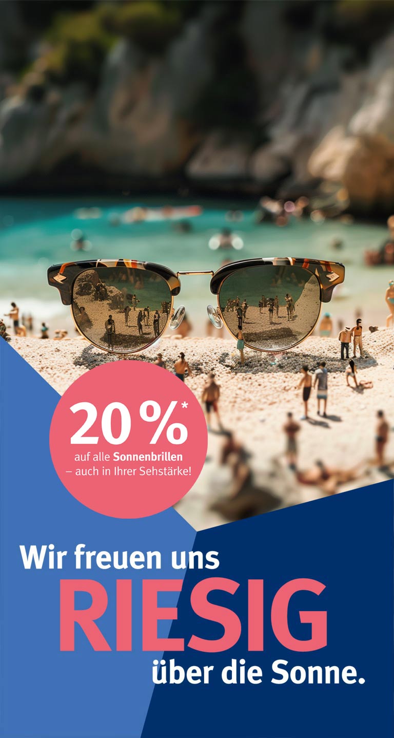Denn bis zum 02.08. erhältst du bei uns 20 % Rabatt auf alle Sonnenbrillen – natürlich auch mit deiner Sehstärke!* 😎